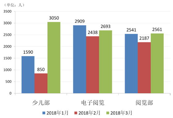 东丽区图书馆2018年第一季度各部门阅览人次统计
