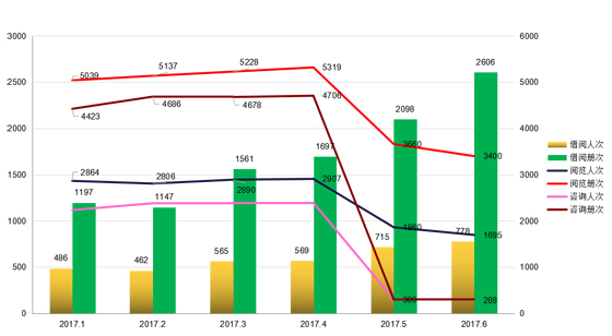 2017年东丽区图书馆少儿借阅室上半年流通情况统计表