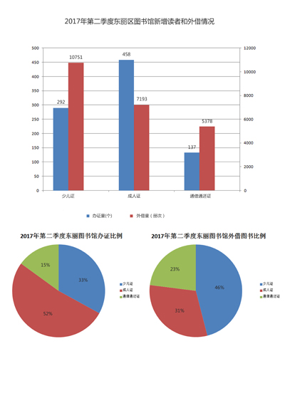 2017年第二季度东丽区图书馆新增读者和外借情况