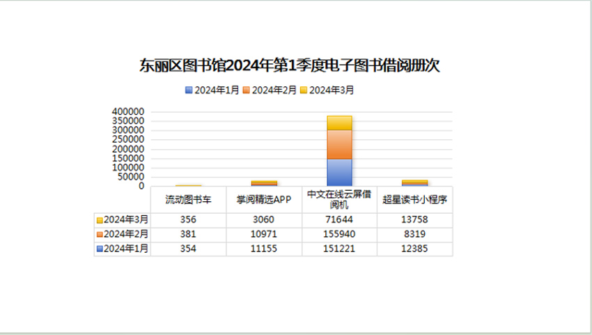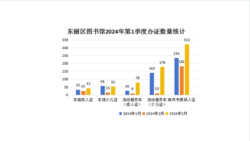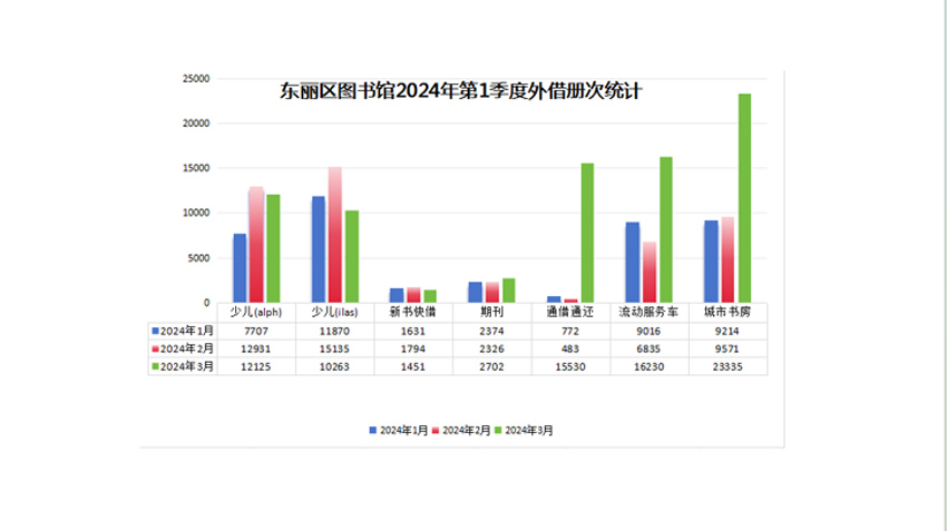 2024年东丽区图书馆第一季度业务数据