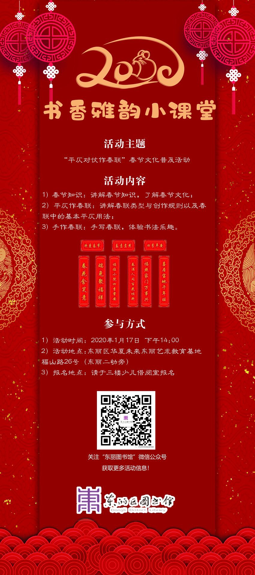“书香雅韵”小课堂——“平仄对仗作春联”春节文化普及活动喊你来参加