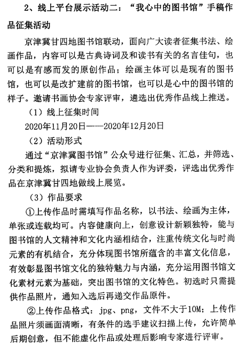 第四届京津冀甘图书馆阅读推广交流展示活动——“我心中的图书馆”手稿作品征集活动