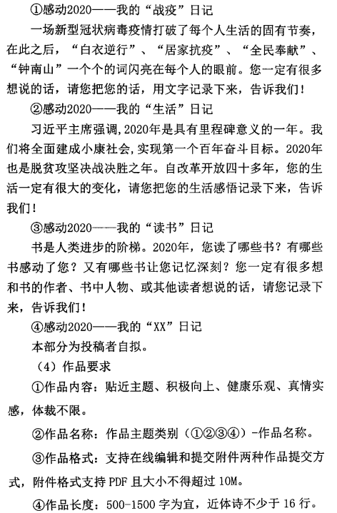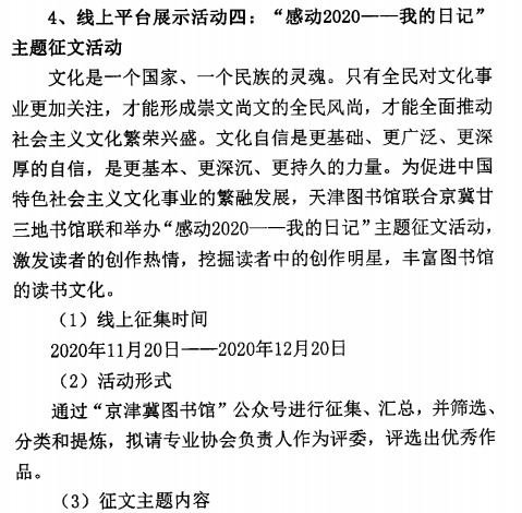 第四届京津冀甘图书馆阅读推广交流展示活动——“感动2020——我的日记”主题征文活动