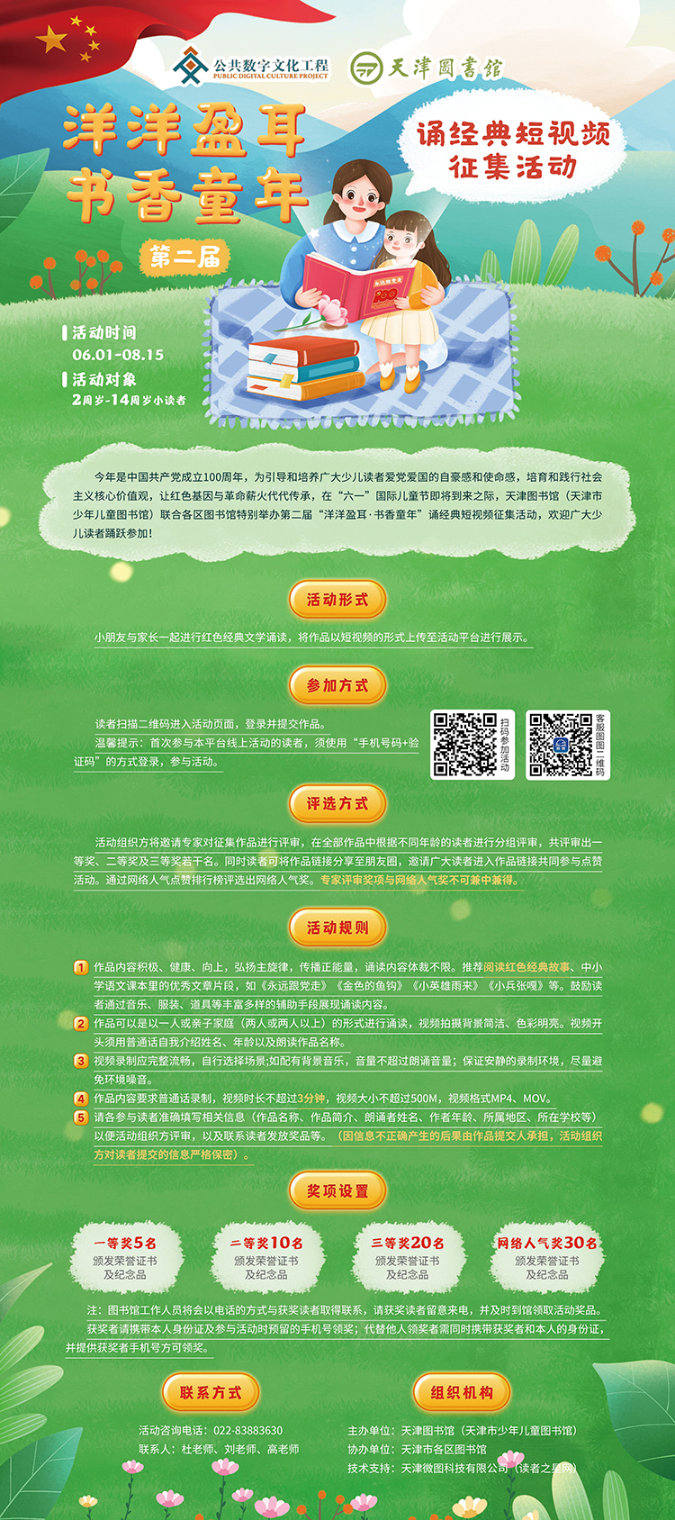 2021天津图书馆第二届“洋洋盈耳·书香童年”迎六一诵经典短视频征集活动开始啦!