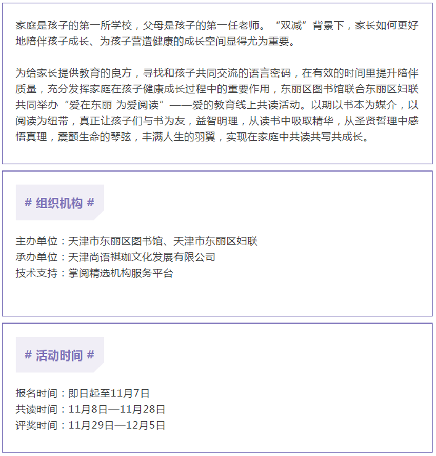 “爱在东丽 为爱阅读”---爱的教育线上有奖共读活动来啦