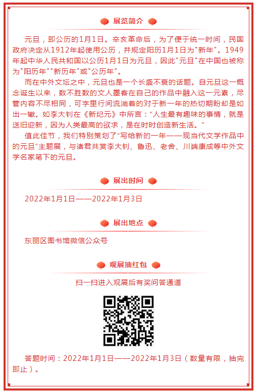 观展抽红包 | 写给新的一年——现当代文学作品中的元旦