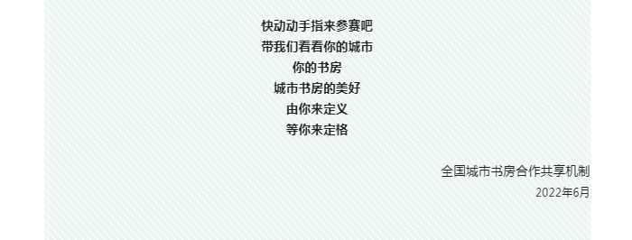 全国城市书房合作共享机制“定格城市书房最美瞬间”摄影大赛等你参加!