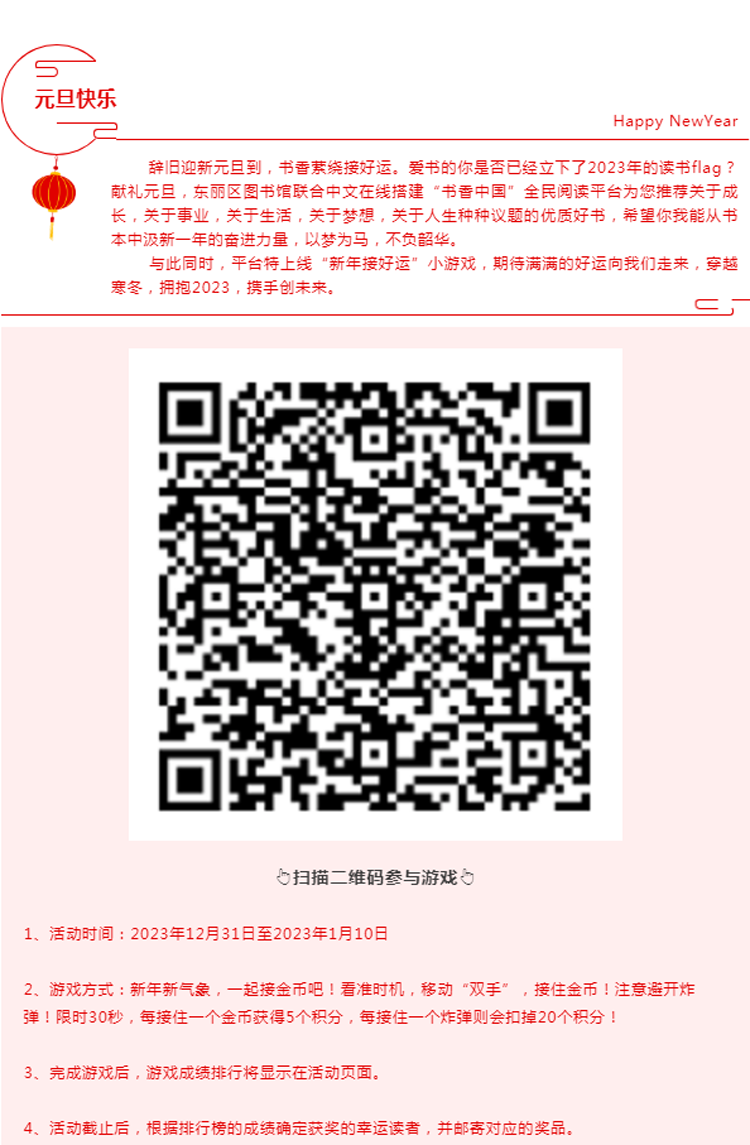 【全民阅读】| “新年新气象 元旦接好运”游戏活动即将上线啦!