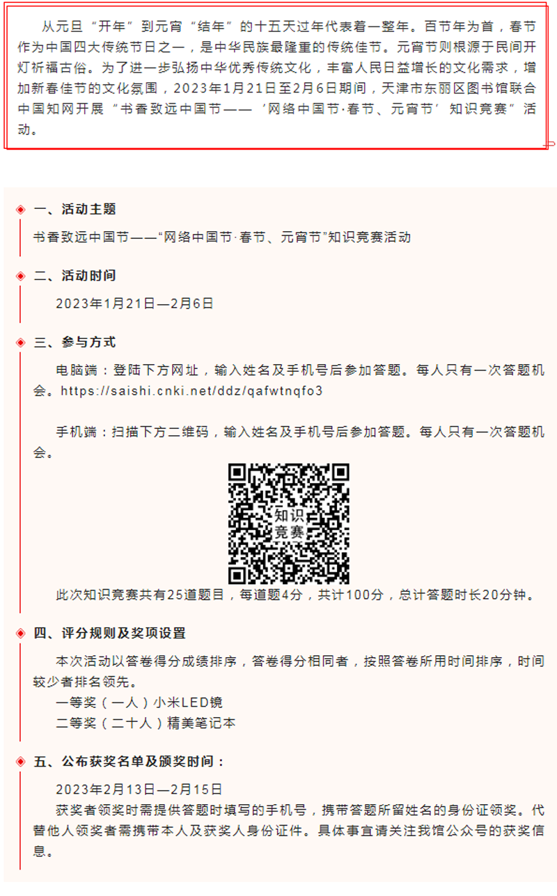 书香致远中国节——“网络中国节·春节、元宵节”知识竞赛活动