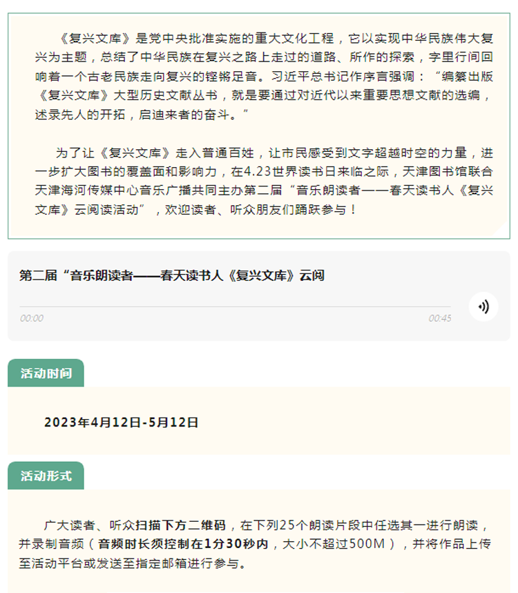 第二届“音乐朗读者——春天读书人《复兴文库》云阅读活动”
