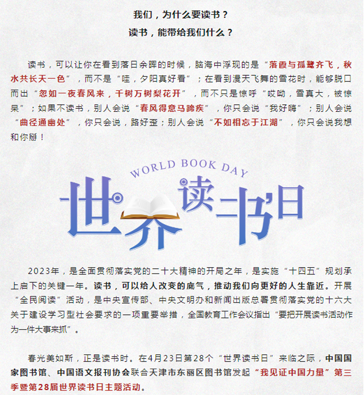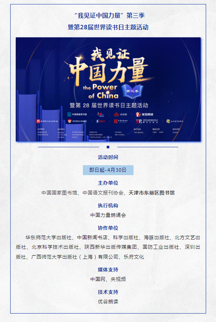 【世界读书日·全民阅读】| 我见证中国力量 (第三季)——第28届世界读书日主题活动