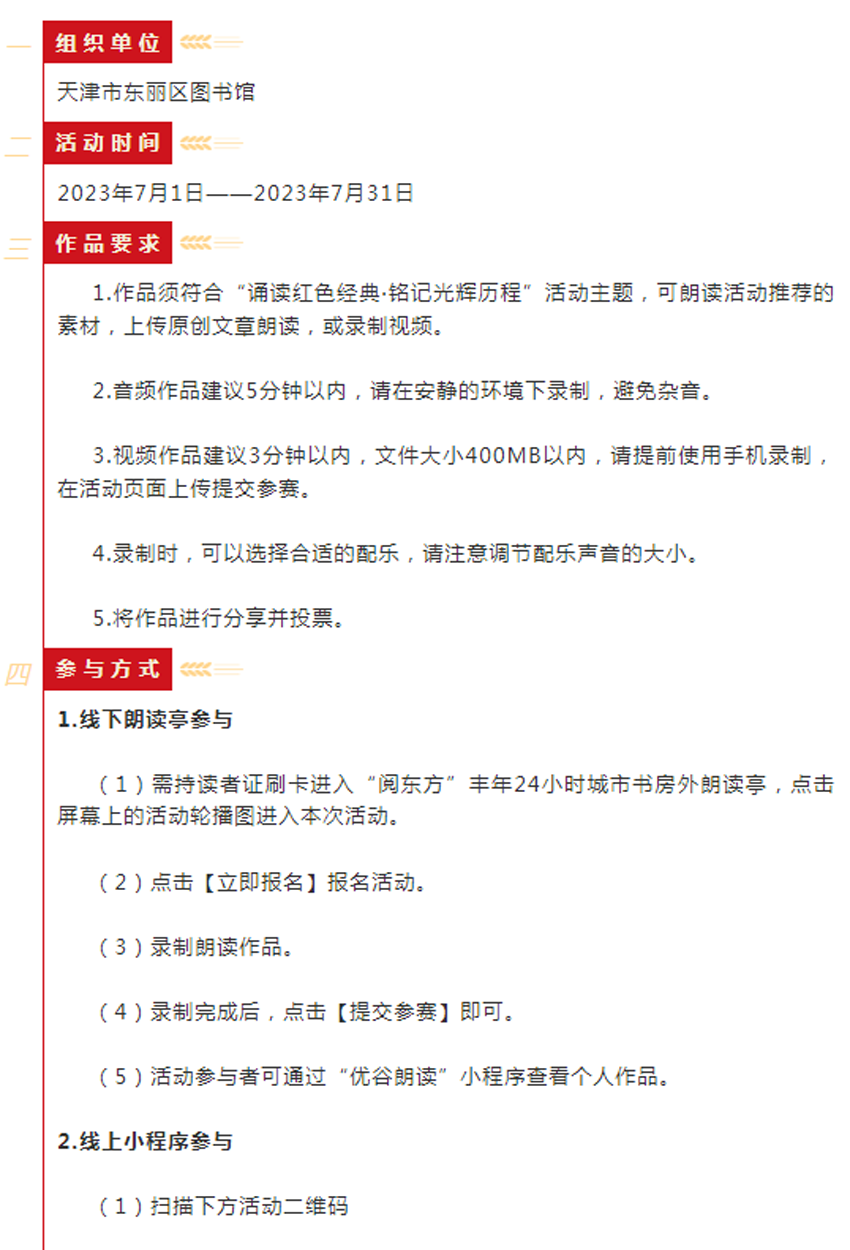 2023年东丽区全民阅读系列活动之“诵读红色经典·铭记光辉历程”线上诵读活动