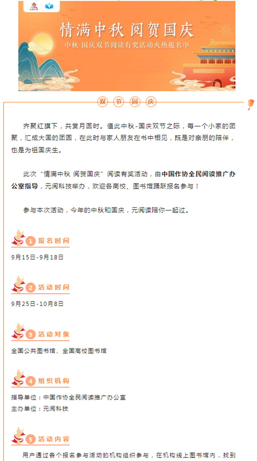 【全民阅读】丨“情满中秋 阅贺国庆”双节阅读有奖活动正在火热报名中!