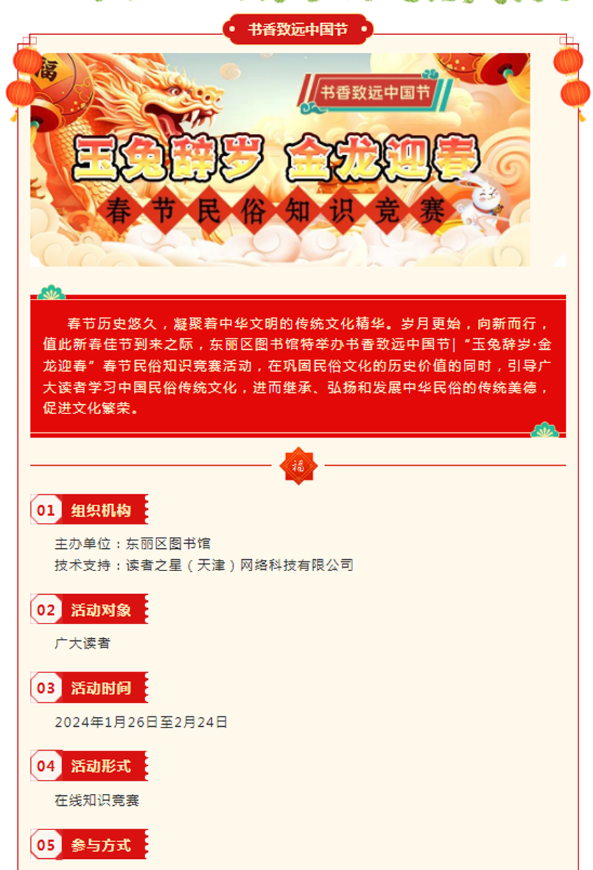 【图书馆里过大年系列活动】| 书香致远中国节——“玉兔辞岁 金龙迎春”线上春节民俗知识竞赛开始啦!