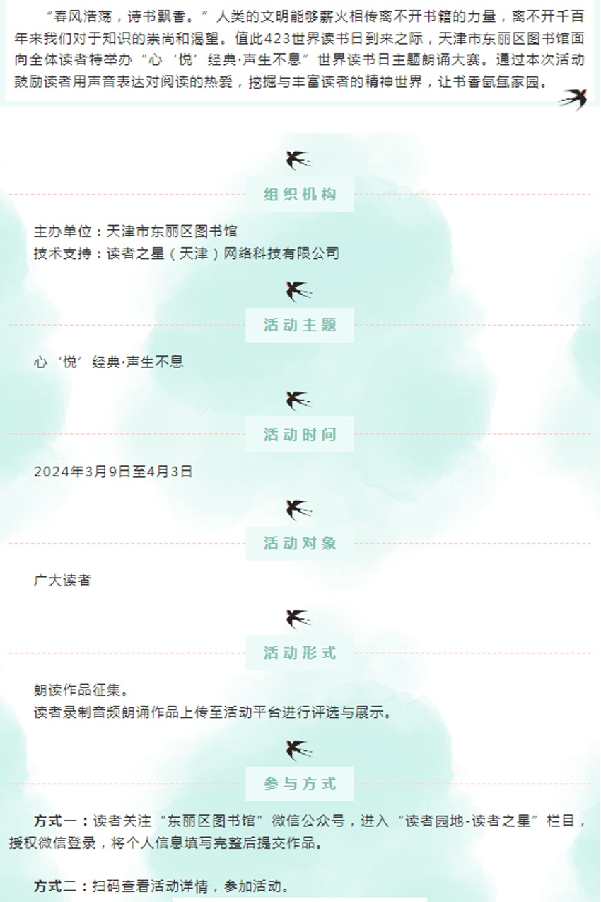 【世界读书日系列活动】| “心‘悦’经典·声生不息”世界读书日主题朗诵大赛