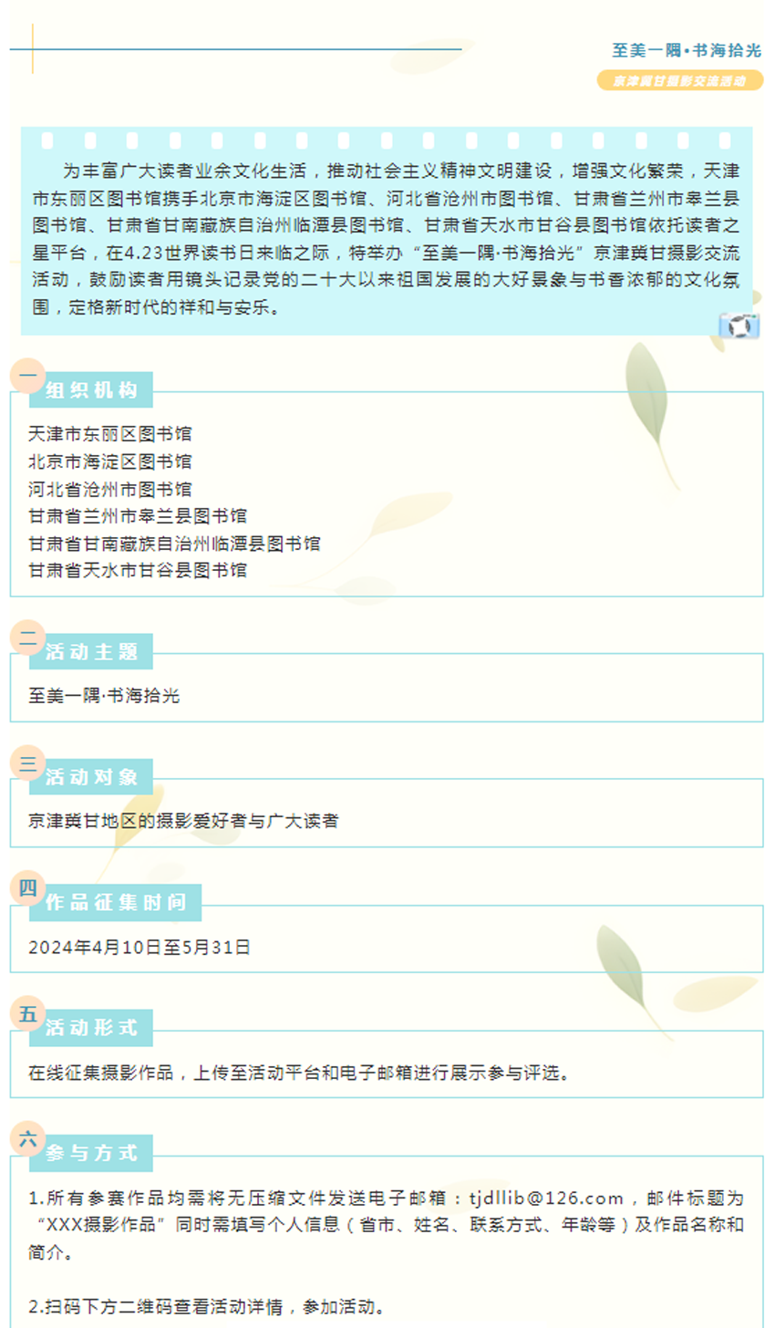 【世界读书日系列活动】| “至美一隅·书海拾光”京津冀甘摄影交流活动即将开启