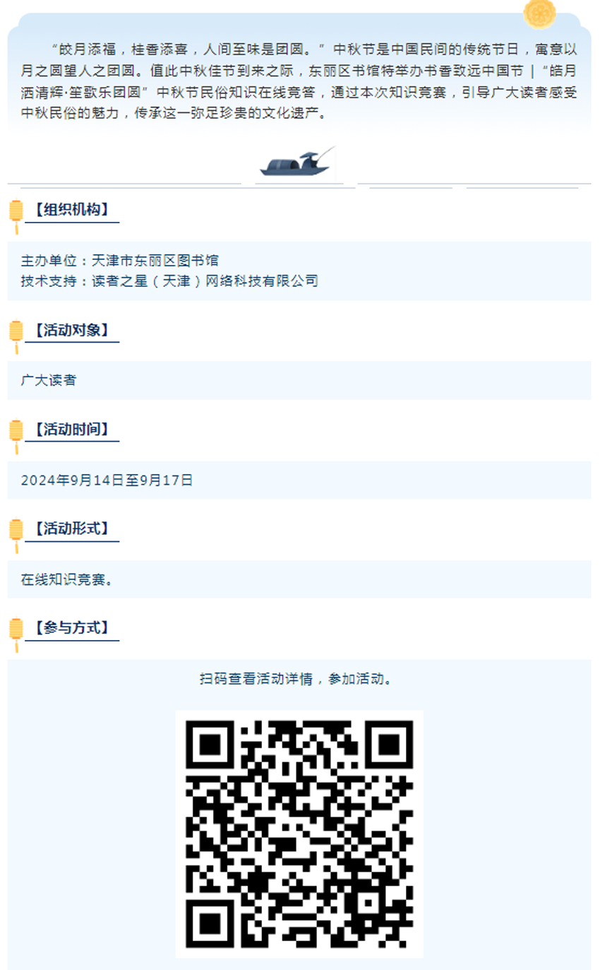 【活动通知】| 书香致远中国节——“皓月洒清辉·笙歌乐团圆”中秋节民俗知识在线竞答开始啦!