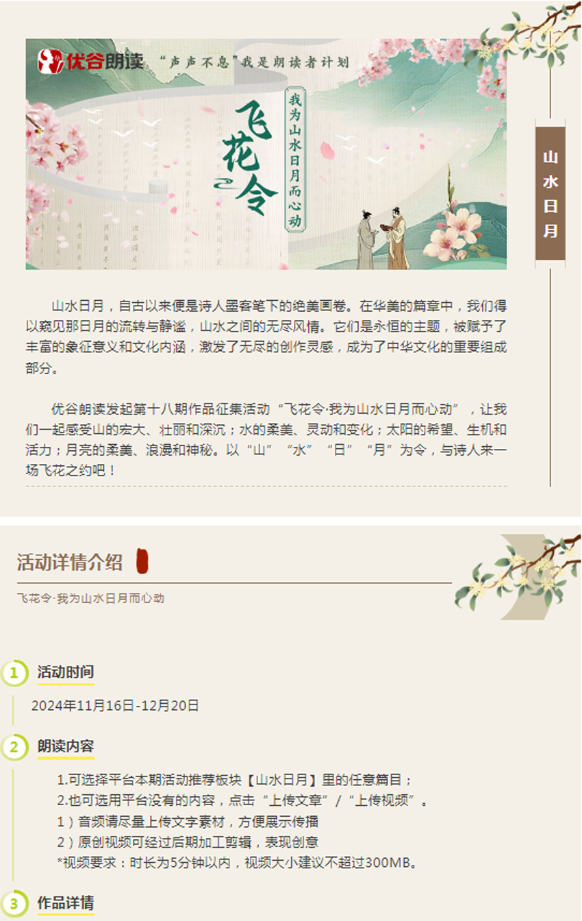 【活动通知】| “我为山水日月而心动”——“声声不息”我是朗读者计划活动上线啦~