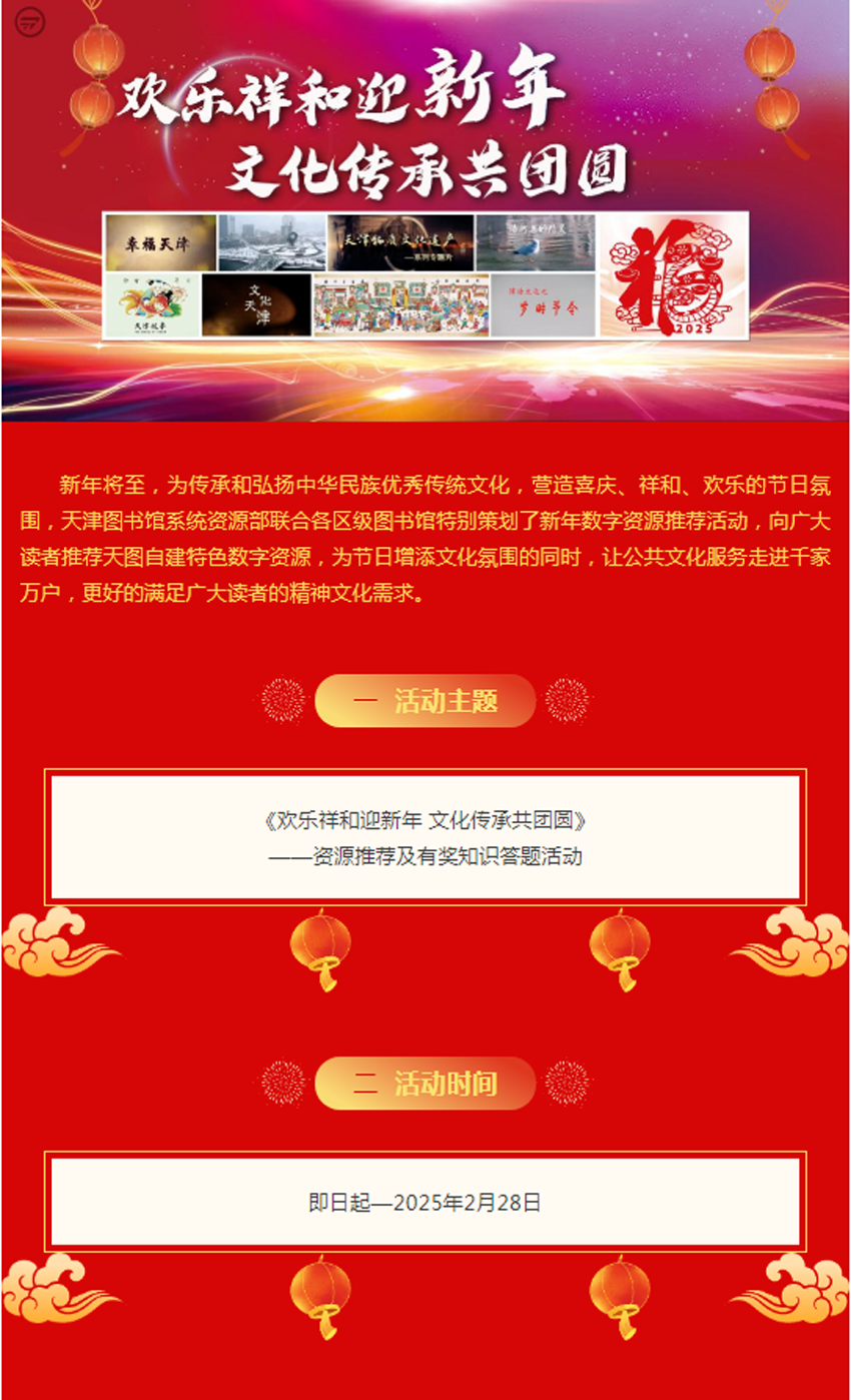 【活动通知】| 欢乐祥和迎新年、文化传承共团圆——图书馆举办新年数字资源推荐活动