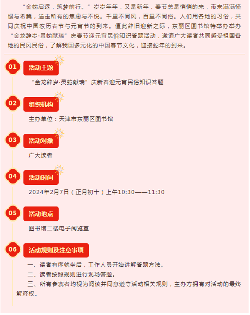 我们的中国梦·天津市2025年文化进万家活动 | 书香致远中国节——“金龙辞岁·灵蛇献瑞”庆新春迎元宵民俗知识答题活动诚邀您参加