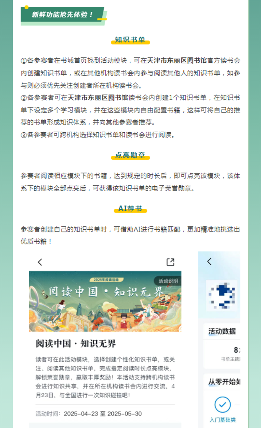 【活动通知】| 我们的中国梦·文化进万家——东丽区图书馆4.23系列活动之“阅读中国·知识无界”活动开启