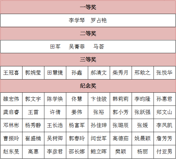经过认真的初评和复评,最终评选出一等奖2名,二等奖3名,三等奖8名,纪念奖40名(获奖名单附后),表彰会将于9月19日上午9:30在图书馆五楼荣誉展室举行,欢迎各位获奖者前来参加。