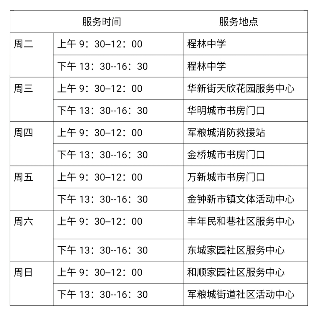 10月27日—11月1日流动图书车服务时间地点公布如下,如有社区、单位需要图书车上门服务请与杜俊老师联系,联系电话:18522291388。