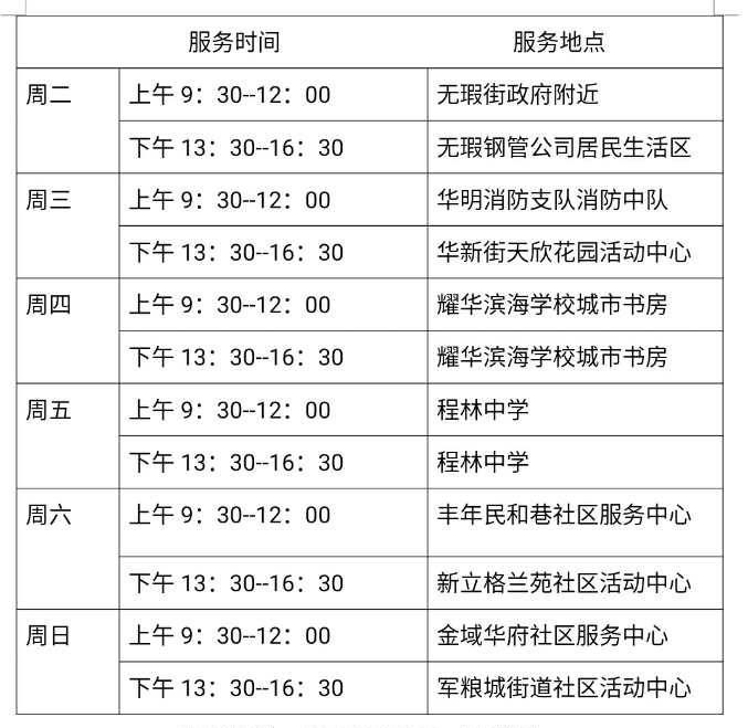 11月3日—11月8日流动图书车服务时间地点公布如下,如有社区、单位需要图书车上门服务请与杜俊老师联系,联系电话:18522291388。