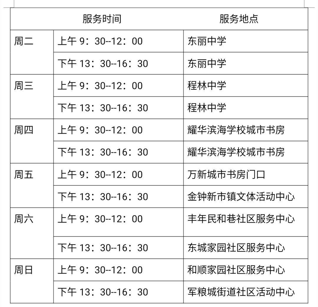 11月24日—11月29日流动图书车服务时间地点公布如下,如有社区、单位需要图书车上门服务请与杜俊老师联系,联系电话:18522291388。