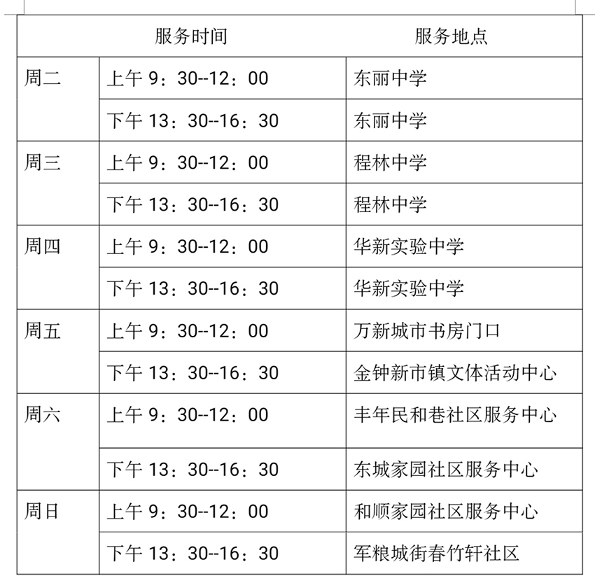 12月8日—12月13日流动图书车服务时间地点公布如下,如有社区、单位需要图书车上门服务请与杜俊老师联系,联系电话:18522291388。
