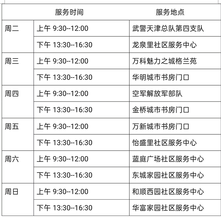 5月4日—5月9日流动图书车服务时间地点公布如下,如有社区、单位需要图书车上门服务请与杜俊老师联系,联系电话:18522291388。