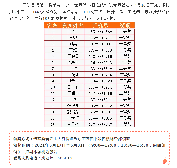 “同讲普通话·携手奔小康”世界读书日在线知识竞赛活动结果揭晓