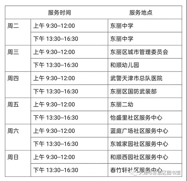 6月15日—6月20日流动图书车服务时间地点公布如下,如有社区、单位需要图书车上门服务请与杜俊老师联系,联系电话:18522291388。
