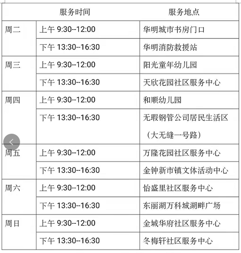 12月21日—12月26日流动图书车服务时间地点公布如下,如有社区、单位需要图书车上门服务请与杜俊老师联系,联系电话:18522291388。