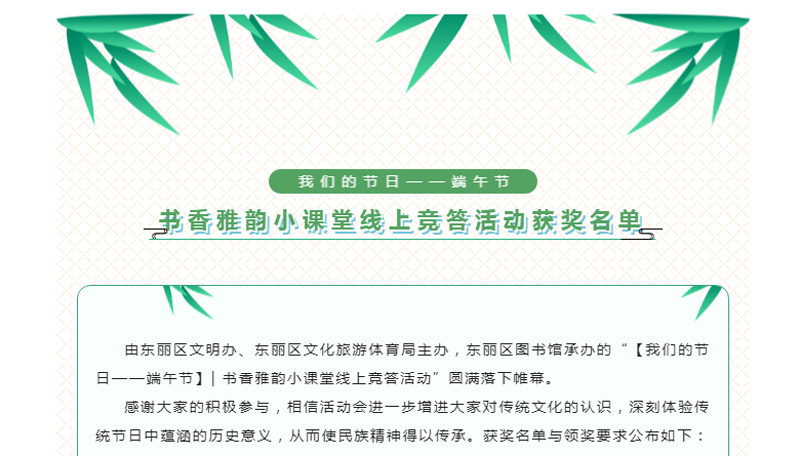 【我们的节日——端午节】| 书香雅韵小课堂线上竞答活动获奖名单