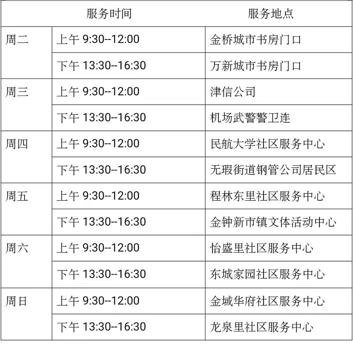6月28日—7月3日流动图书车服务时间地点公布如下,如有社区、单位需要图书车上门服务请与杜俊老师联系,联系电话:18522291388。