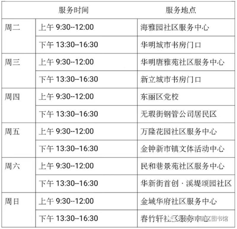 8月23日—8月28日流动图书车服务时间地点公布如下,如有社区、单位需要图书车上门服务请与杜俊老师联系,联系电话:18522291388。