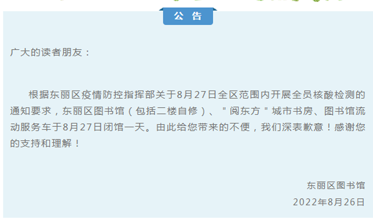 东丽图书馆临时闭馆公告