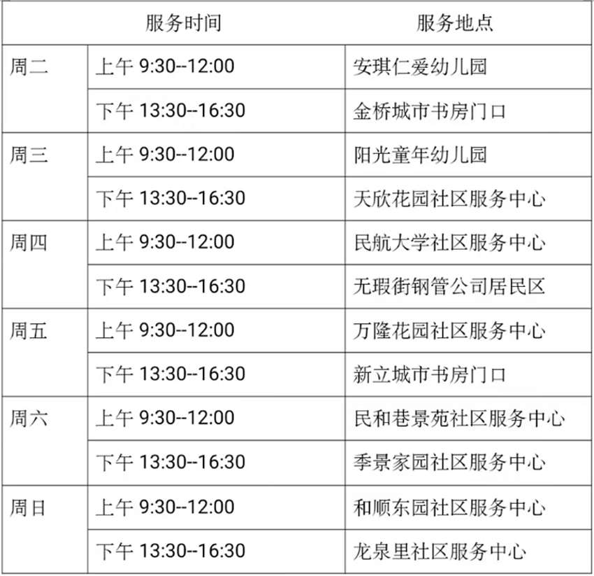 11月22日—11月27日流动图书车服务时间地点公布如下,如有疫情随时调整。社区、单位需要图书车上门服务请与杜俊老师联系,联系电话:18522291388。
