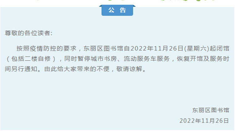 东丽图书馆闭馆公告