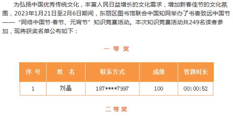 书香致远中国节——“网络中国节·春节、元宵节”知识竞赛活动获奖名单揭晓