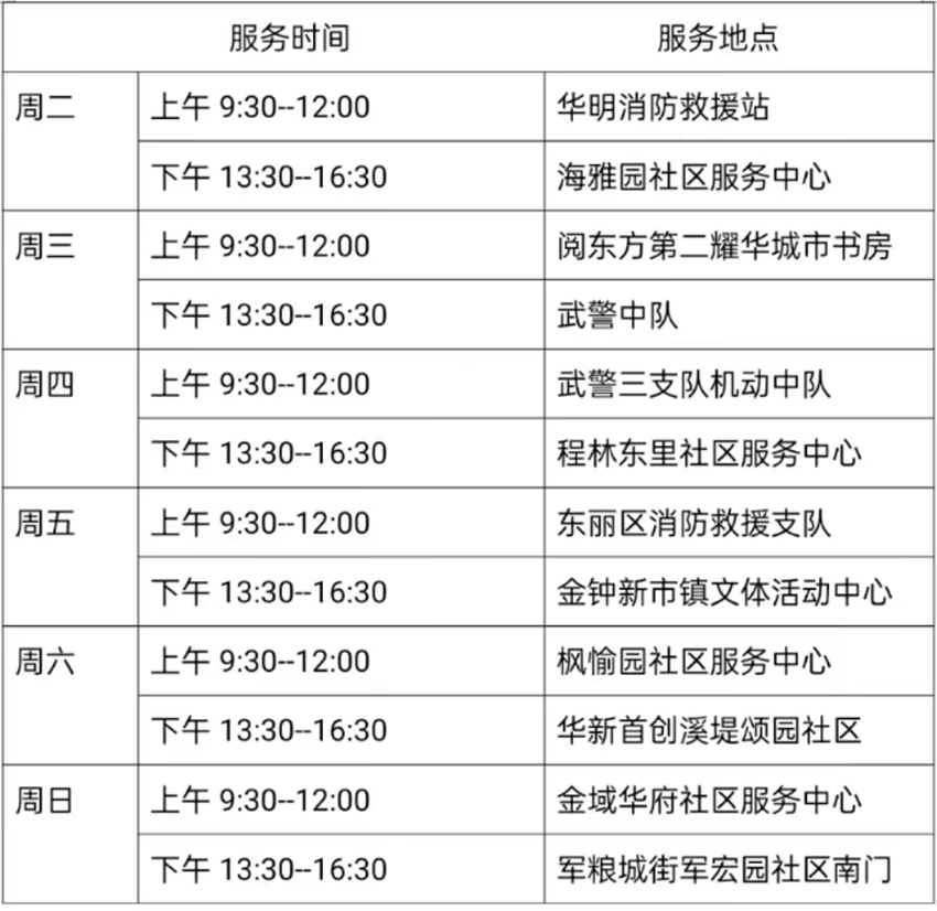 7月4日—7月9日东丽区图书馆流动服务车服务时间地点公布如下。社区、单位需要服务车上门服务请与杜俊老师联系,联系电话:18522291388。