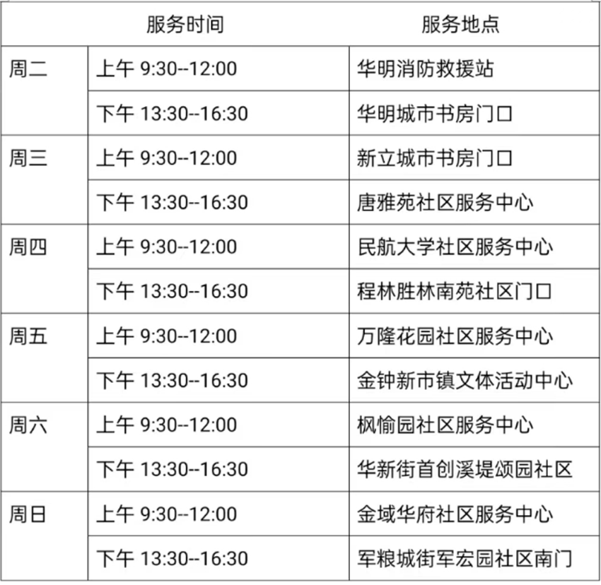 8月29日—9月3日东丽区图书馆流动服务车服务时间地点公布如下。社区、单位需要服务车上门服务请与杜俊老师联系,联系电话:18522291388。