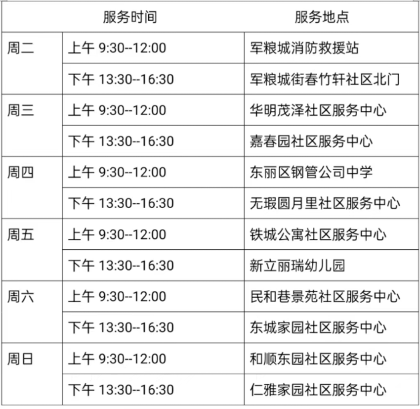 9月19日—9月24日东丽区图书馆流动服务车服务时间地点公布如下。社区、单位需要服务车上门服务请与杜俊老师联系,联系电话:18522291388。