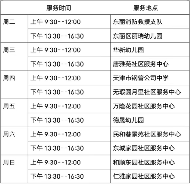 3月5日—3月10日东丽区图书馆流动服务车服务时间地点公布如下。社区、单位需要服务车上门服务请与杜俊老师联系,联系电话:18522291388。