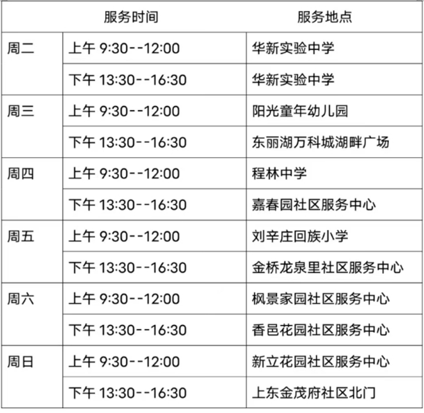 3月26日—3月31日东丽区图书馆流动服务车服务时间地点公布如下。社区、单位需要服务车上门服务请与杜俊老师联系,联系电话:18522291388。