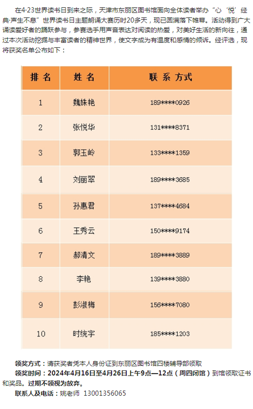 【领奖通知】| “心‘悦’经典·声生不息”世界读书日主题朗诵大赛获奖名单揭晓