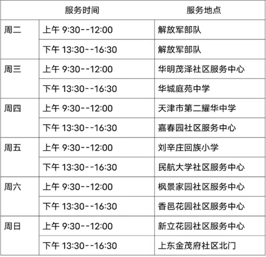 5月21日—5月26日东丽区图书馆流动服务车服务时间地点公布如下。社区、单位需要服务车上门服务请与杜俊老师联系,联系电话:18522291388。