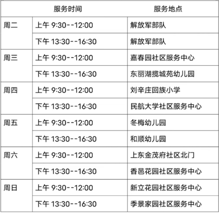 6月18日—6月23日东丽区图书馆流动服务车服务时间地点公布如下。社区、单位需要服务车上门服务请与杜俊老师联系,联系电话:18522291388。
