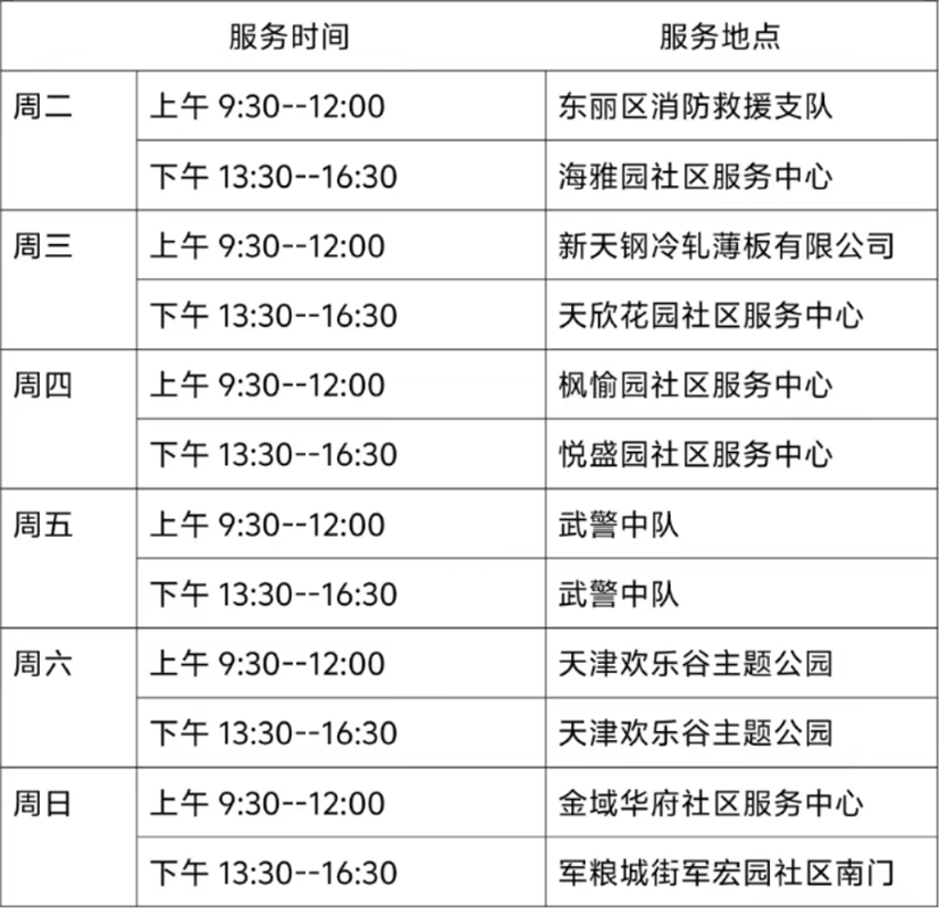 7月30日—8月4日东丽区图书馆流动服务车服务时间地点公布如下。社区、单位需要服务车上门服务请与杜俊老师联系,联系电话:18522291388。